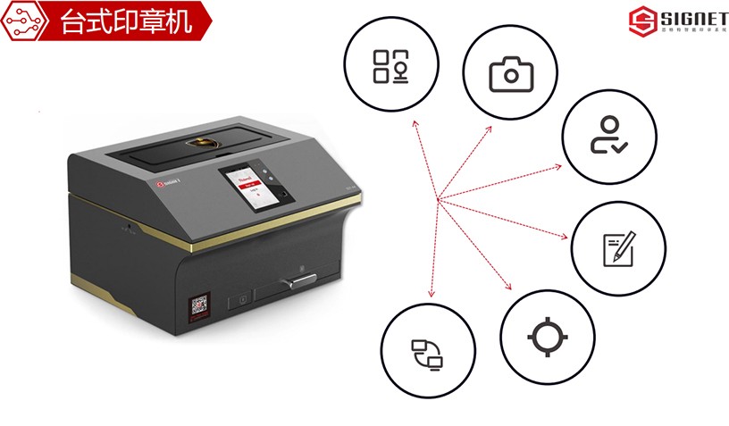 1.臺式智能印章設備:思格特臺式印章設備可同時管理四枚不同類型的印章,每次使用印章通過設備上的觸摸屏即可選擇用印類型;