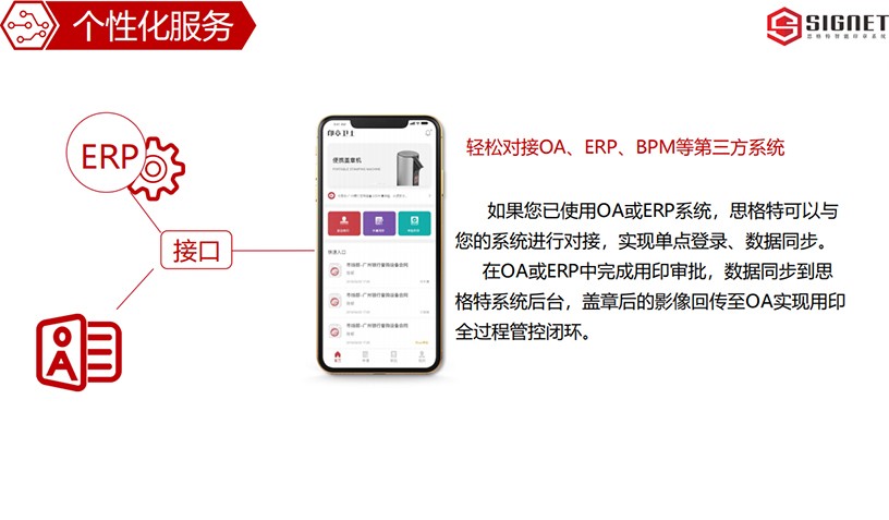 智能印章管理平臺是一種軟件+硬件的印章管理系統,通過手機APP軟甲結合智能終端設備,將實體印章安裝設備當中通過物聯網技術賦予了傳統實體印章“智慧”化效果。